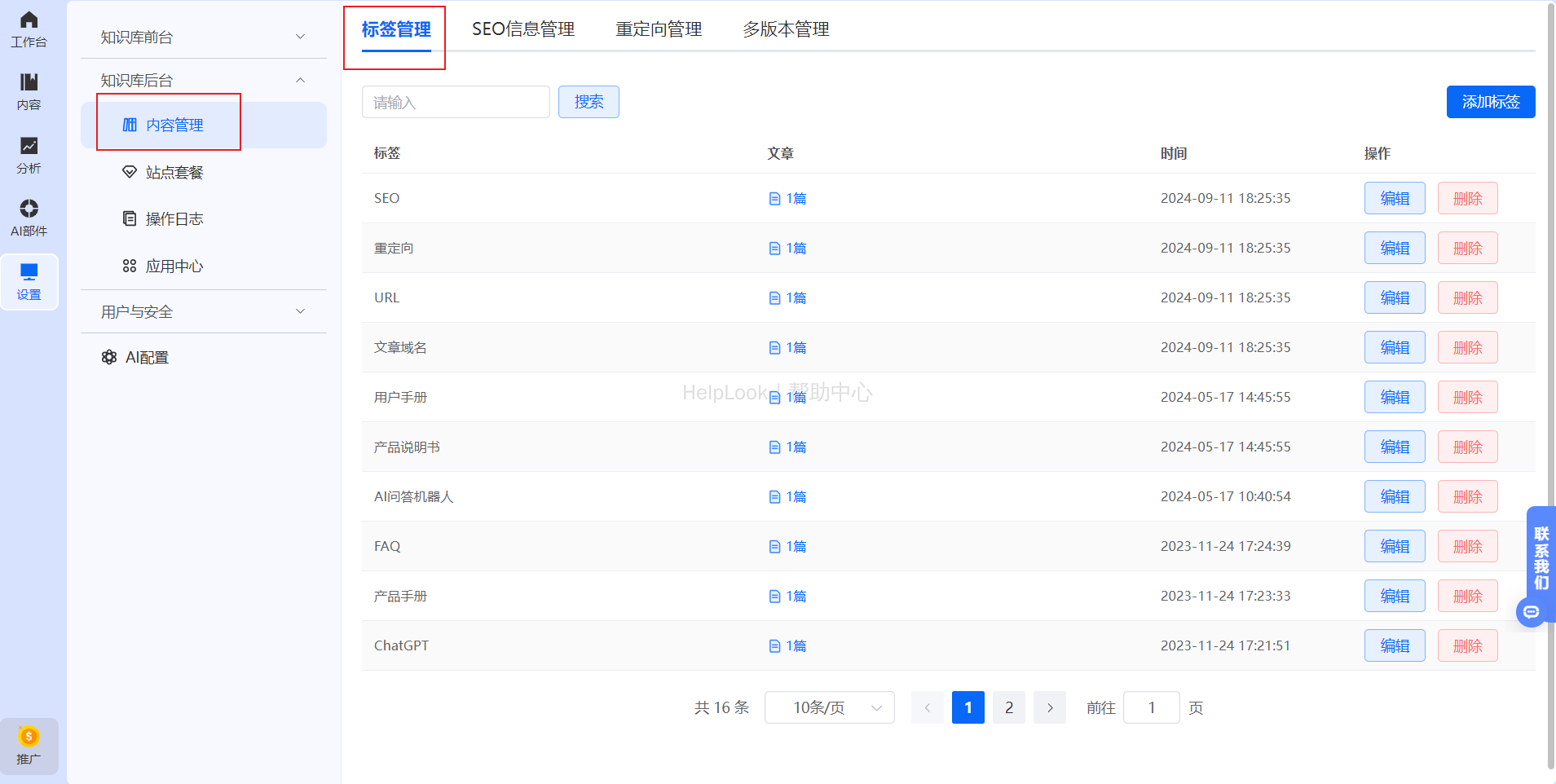 标签精细化:通过标签管理功能,可以帮助用户更好地组织和分类内容,提升知识库的管理效率。通过标签,让用户可以快速定位和检索相关文档,确保信息的有序性和可访问性。