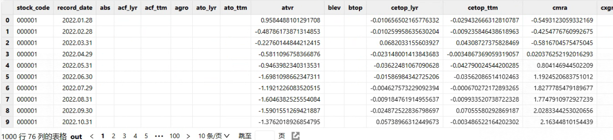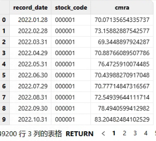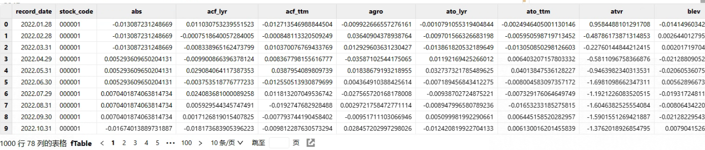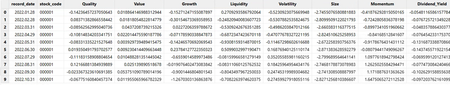 getStoq(startTime = 2022.01.03,windows = 63,endTime = 2023.01.02)单个因子计算函数的返回结果均是窄表,返回结果大致如下: