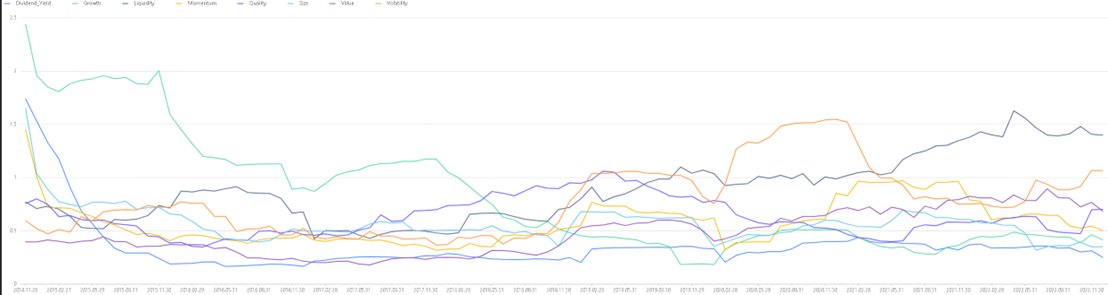 2018 年 MSCI 发布了中国 A 股全市场股票模型。与传统的时间序列回归模型有所不同,多因子风险模型能够更高效准确地捕捉横截面上机构头寸在各种因子(包括市值等风格因子)上的暴露。并且当模型中纳入具有时序记忆的变量时,它可以共享截面回归和时序回归模型的一些优良性质。该模型采用多层次的因子体系,能够更精细地预测和解释中国股票市场的风险,对中国 A 股的风险评估、组合优化和量化策略产生了积极且广泛的影响。