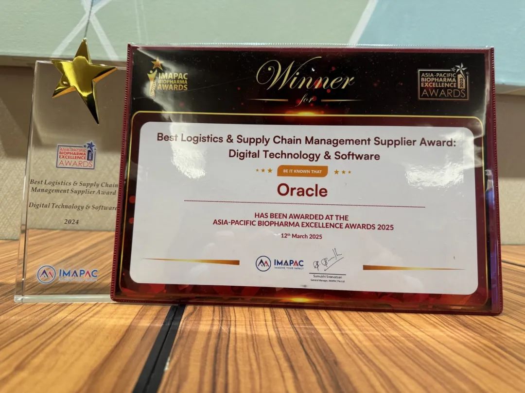 Oracle Life Sciences 荣获 “2025 年亚太生物制药卓越奖” (ABEA) 的两项荣誉。Oracle 连续两年被评为 “最佳临床试验数据管理与分析供应商”,展示了其在为临床研究提供创新数据解决方案方面的先进地位。此外,Oracle 也凭借面向生物制药行业的供应链解决方案,获评为 “最佳物流与供应链管理数字技术与软件供应商”。