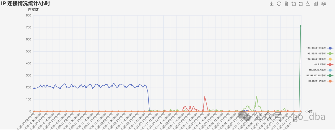 import refrom datetime import datetimefrom pyecharts import options as optsfrom pyecharts.charts import Line, Pagedef parse_log(log_text):"""解析日志文本,提取包含CONNECT_DATA字段行的时间戳、SERVICE、HOST和IP,并区分成功和失败连接:param log_text: 日志文本:return: 成功时间戳列表、失败时间戳列表、总时间戳列表、SERVICE信息列表、HOST信息列表、IP信息列表"""success_timestamps = []failure_timestamps = []total_timestamps = []services = []hosts = []ips = []pattern = r'(\d{2}-[A-Z]{3}-\d{4} \d{2}:\d{2}:\d{2})|(\d{4}-\d{2}-\d{2}T\d{2}:\d{2}:\d{2})'service_pattern = r'SERVICE_NAME=(\w+)'host_pattern = r'HOST=(\w+)'ip_pattern = r'HOST=(\d{1,3}\.\d{1,3}\.\d{1,3}\.\d{1,3})'for line in log_text.split('\n'):if 'CONNECT_DATA' in line:match = re.search(pattern, line)if match:timestamp_str = match.group(0)try:if '-' in timestamp_str[0:3]:timestamp = datetime.strptime(timestamp_str, '%d-%b-%Y %H:%M:%S')else:timestamp = datetime.strptime(timestamp_str, '%Y-%m-%dT%H:%M:%S')total_timestamps.append(timestamp)if line.strip().endswith('0'):success_timestamps.append(timestamp)else:failure_timestamps.append(timestamp)service_match = re.search(service_pattern, line)host_match = re.search(host_pattern, line)ip_match = re.search(ip_pattern, line)service = service_match.group(1) if service_match else Nonehost = host_match.group(1) if host_match else Noneip = ip_match.group(1) if ip_match else Noneservices.append((timestamp, service))hosts.append((timestamp, host))ips.append((timestamp, ip))except ValueError:print(f"无法解析时间戳: {timestamp_str}")print(f"提取到的成功时间戳数量: {len(success_timestamps)}")print(f"提取到的失败时间戳数量: {len(failure_timestamps)}")print(f"提取到的总时间戳数量: {len(total_timestamps)}")return success_timestamps, failure_timestamps, total_timestamps, services, hosts, ipsdef count_connections(timestamps, interval):"""统计不同时间间隔的连接数:param timestamps: 时间戳列表:param interval: 时间间隔,如 'H' 表示小时,'T' 表示分钟,'S' 表示秒:return: 时间间隔和对应的连接数"""counts = {}for timestamp in timestamps:if interval == 'H':key = timestamp.replace(minute=0, second=0, microsecond=0).strftime('%Y-%m-%d %H:00:00')elif interval == 'T':key = timestamp.replace(second=0, microsecond=0).strftime('%Y-%m-%d %H:%M:00')elif interval == 'S':key = timestamp.replace(microsecond=0).strftime('%Y-%m-%d %H:%M:%S')if key in counts:counts[key] += 1else:counts[key] = 1return sorted(counts.items())def count_by_attribute(data, interval, attribute):"""按指定属性统计不同时间间隔的连接数:param data: 包含时间戳和属性的元组列表:param interval: 时间间隔,如 'H' 表示小时,'T' 表示分钟,'S' 表示秒:param attribute: 属性名称:return: 以属性为键,时间间隔和对应连接数为值的字典"""counts = {}for timestamp, attr in data:if attr is None:continueif interval == 'H':key = timestamp.replace(minute=0, second=0, microsecond=0).strftime('%Y-%m-%d %H:00:00')elif interval == 'T':key = timestamp.replace(second=0, microsecond=0).strftime('%Y-%m-%d %H:%M:00')elif interval == 'S':key = timestamp.replace(microsecond=0).strftime('%Y-%m-%d %H:%M:%S')if attr not in counts:counts[attr] = {}if key in counts[attr]:counts[attr][key] += 1else:counts[attr][key] = 1for attr in counts:counts[attr] = sorted(counts[attr].items())return countsdef create_line_chart(success_data, failure_data, total_data, interval):"""创建线图:param success_data: 成功连接的时间间隔和对应的连接数:param failure_data: 失败连接的时间间隔和对应的连接数:param total_data: 总连接的时间间隔和对应的连接数:param interval: 时间间隔,如 '小时','分钟','秒':return: 线图对象"""x_data = sorted(set([item[0] for item in success_data + failure_data + total_data]))success_y_data = [next((item[1] for item in success_data if item[0] == x), 0) for x in x_data]failure_y_data = [next((item[1] for item in failure_data if item[0] == x), 0) for x in x_data]total_y_data = [next((item[1] for item in total_data if item[0] == x), 0) for x in x_data]line = (Line(init_opts=opts.InitOpts(bg_color="#f5f5f5", width="100%")).add_xaxis(x_data).add_yaxis(series_name=f"成功连接总数/{interval}",y_axis=success_y_data,label_opts=opts.LabelOpts(is_show=False),linestyle_opts=opts.LineStyleOpts(width=2, color="#228B22"),symbol="circle",symbol_size=6,itemstyle_opts=opts.ItemStyleOpts(color="#228B22")).add_yaxis(series_name=f"失败连接总数/{interval}",y_axis=failure_y_data,label_opts=opts.LabelOpts(is_show=False),linestyle_opts=opts.LineStyleOpts(width=2, color="#FF0000"),symbol="circle",symbol_size=6,itemstyle_opts=opts.ItemStyleOpts(color="#FF0000")).add_yaxis(series_name=f"总连接数/{interval}",y_axis=total_y_data,label_opts=opts.LabelOpts(is_show=False),linestyle_opts=opts.LineStyleOpts(width=2, color="#FF6347"),symbol="circle",symbol_size=6,itemstyle_opts=opts.ItemStyleOpts(color="#FF6347")).set_global_opts(title_opts=opts.TitleOpts(title=f"连接情况统计/{interval}",title_textstyle_opts=opts.TextStyleOpts(font_size=20, color="#333")),toolbox_opts=opts.ToolboxOpts(is_show=True),xaxis_opts=opts.AxisOpts(name=interval,axislabel_opts=opts.LabelOpts(rotate=45, font_size=12, color="#666"),name_textstyle_opts=opts.TextStyleOpts(font_size=14, color="#333")),yaxis_opts=opts.AxisOpts(name="连接数",axislabel_opts=opts.LabelOpts(font_size=12, color="#666"),name_textstyle_opts=opts.TextStyleOpts(font_size=14, color="#333")),tooltip_opts=opts.TooltipOpts(trigger="axis"),legend_opts=opts.LegendOpts(type_="scroll",orient="vertical",pos_left="right",pos_top="middle",textstyle_opts=opts.TextStyleOpts(font_size=8, color="#333"))))return linedef create_attribute_line_chart(counts, interval, attribute):"""创建按属性统计的线图:param counts: 以属性为键,时间间隔和对应连接数为值的字典:param interval: 时间间隔,如 