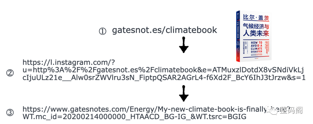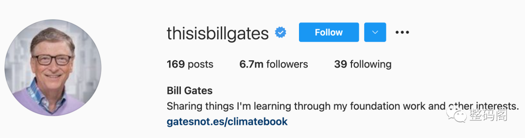 下图是比尔盖茨的Insgatram主页,gatesnot.es/climatebook 就是虚拟URL。