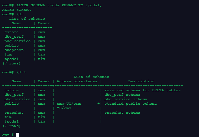 ALTER SCHEMA tpcds RENAME TO tpcds1;