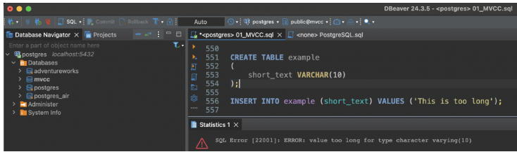 INSERT INTO example (short_text) VALUES ('This is too long');