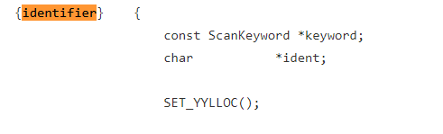 这些只是词法分析中的一部分,毕竟太多了,不过值得一提的是,opengauss定义了大量的关键字,按照字母的顺序进行排列,这样做的目的是方便查找关键字的时候通过二分法进行查找。定义大量关键字的好处就是,到时候编写代码的时可以直接用,更加便捷,而不是慢慢的一点一点的自己想如何实现该功能。在处理标识符的时候,回到关键字列表中进行匹配,如果标识符匹配到关键字,就会跳过标识符的认定直接进行下一步,关键字优先的原则在这里,不是关键字的话,才会认定其为标识符,这样做提高了效率。