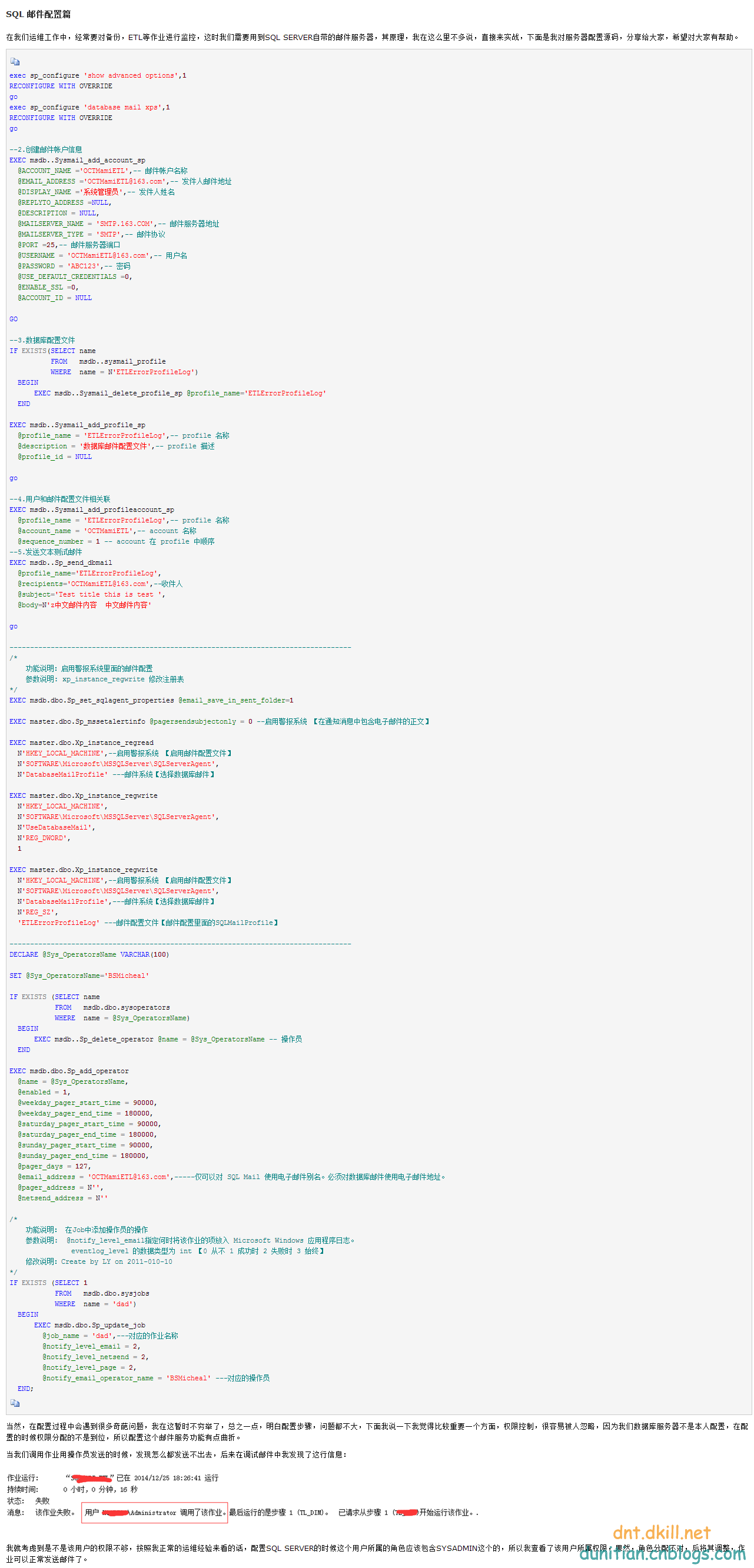 -- select * from msdb.dbo.sysmail_sentitems --查看已发送的消息-- select * from msdb.dbo.sysmail_event_log --记录日记