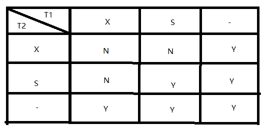 (x表示是排它锁(Exclusive),s表示共享锁(Share),Y表示yes,N表示no)