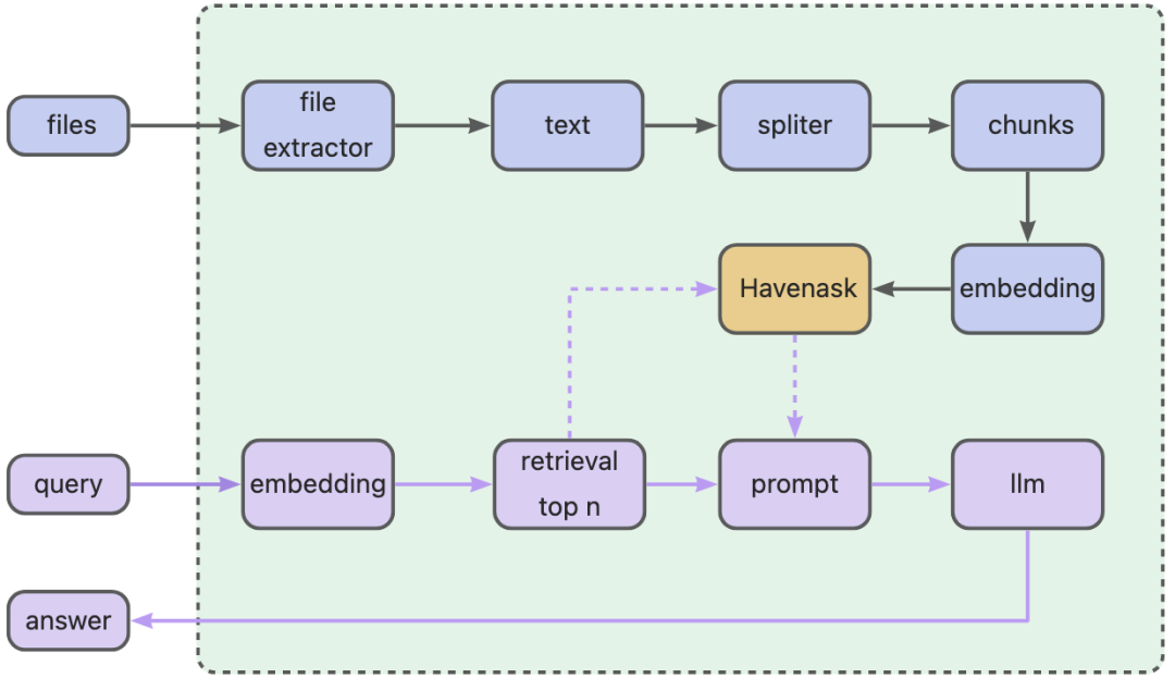 将embedding和chunk,以及chunk所属的原始文档的一些属性信息(如文件名、文章地址等)一起存入Havenask中