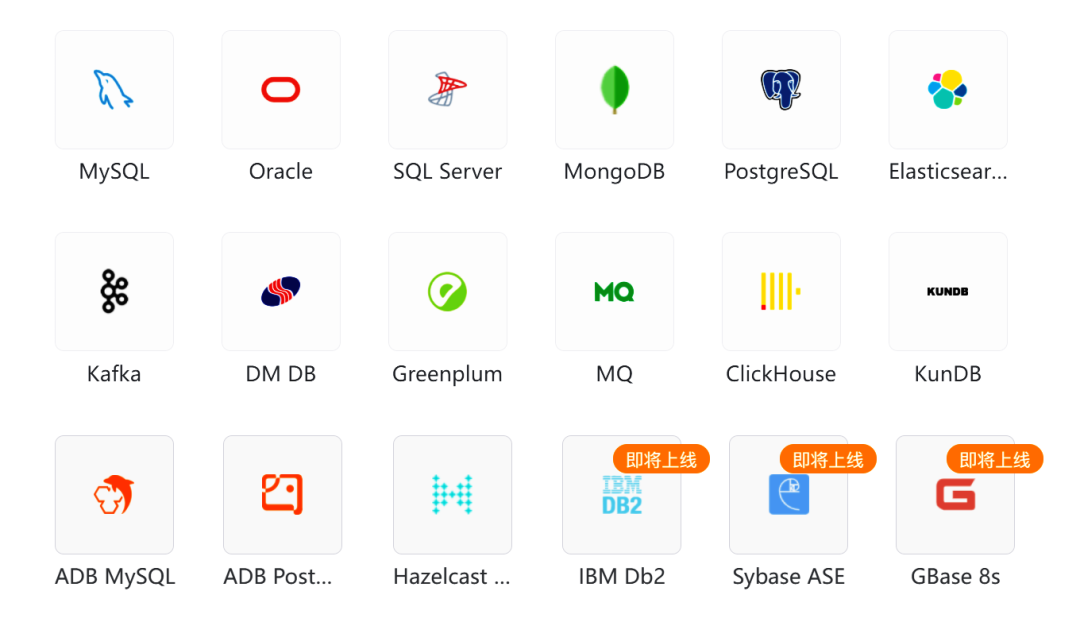 Tapdata Cloud 是国内首家异构数据库实时同步云平台,目前支持Oracle、MySQL、PG、SQL Server、MongoDB、ES 、达梦、Kafka、GP、MQ、ClickHouse、Hazelcast Cloud、ADB MySQL、ADB PostgreSQL、KunDB之间的数据同步,即将支持 DB2、Sybase ASE、Redis、GBase、GaussDB 等,并对用户永久免费。
