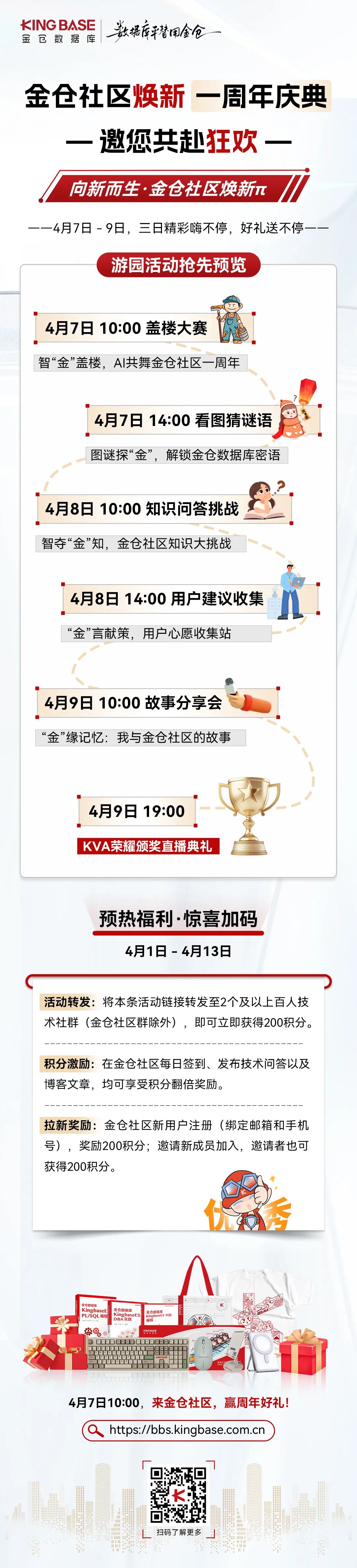 邀您共赴狂欢!金仓社区焕新一周年庆典来喽