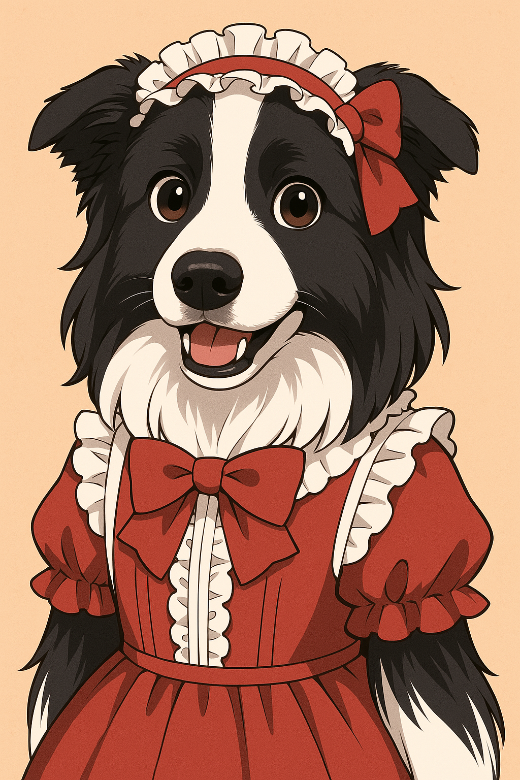 提示词:请画一个漫画,内容是这只边牧穿上洛丽塔衣服
