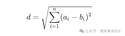 欧几里得距离是计算两个向量在空间中的直线距离,向量对应元素差的平方和的平方根。其n维代数公式: