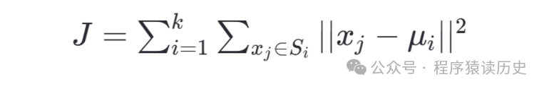 || xj — ui || 2 表示数据点x j 与质心μ i之间的欧几里得距离的平方。