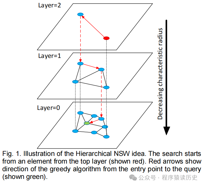 HNSW 搜索示意图,来自《Efficient ..》一文
