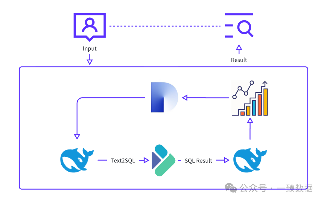 用户提需求 → DeepSeek进行Text2SQL → Doris执行查询 → DeepSeek分析 → 可视化BI展示