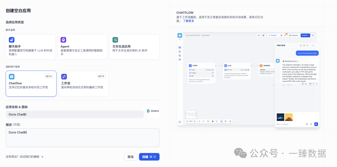 今天,来一起学习如何用Doris+DeepSeek+Dify,≈0代码搭建一套Doris ChatBI系统。