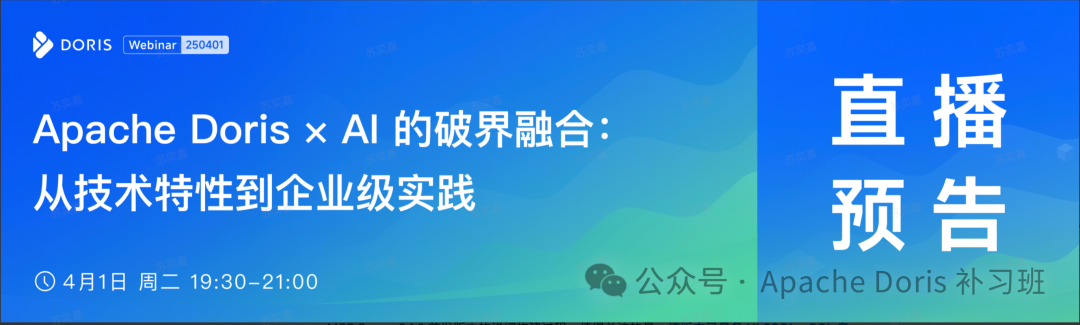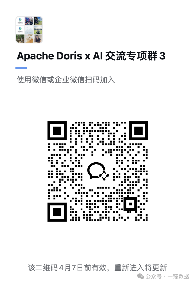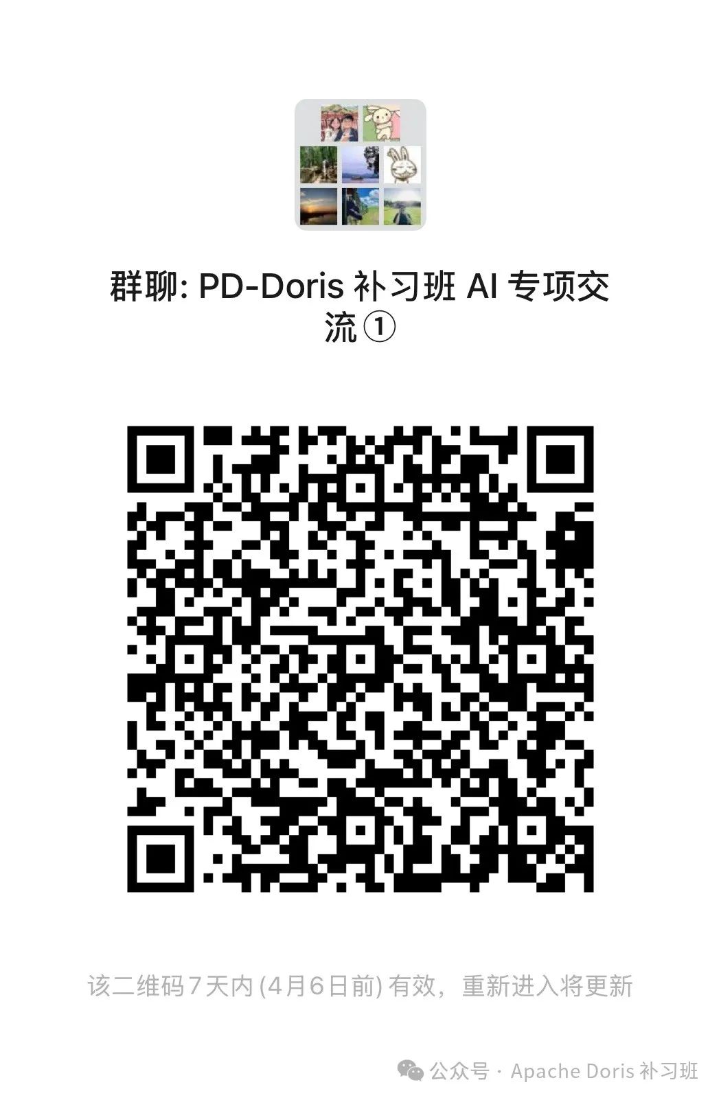 Doris & AI 专项群以及 Doris 补习班 & AI 专项群二维码已放置公众号尾部,或可加我好友拉你入群~
