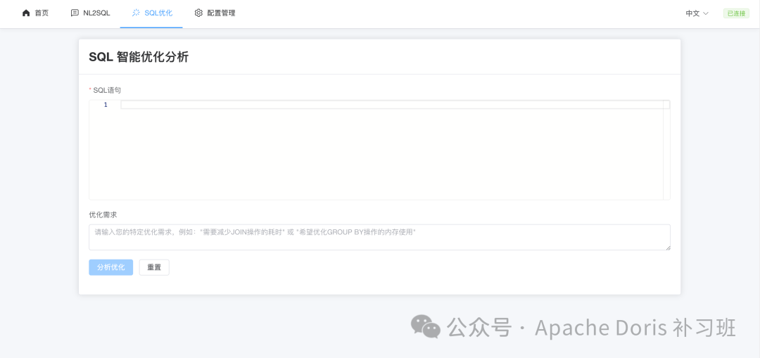 该能力将会深度整合 Doris 引擎的特性,通过智能分析 SQL 执行计划、查询性能特征和数据分布特点,提供定制化的优化建议。系统会考虑表的分区分桶策略、索引使用情况、JOIN操作优化、数据倾斜处理等多维度因素,生成针对性的改进方案。