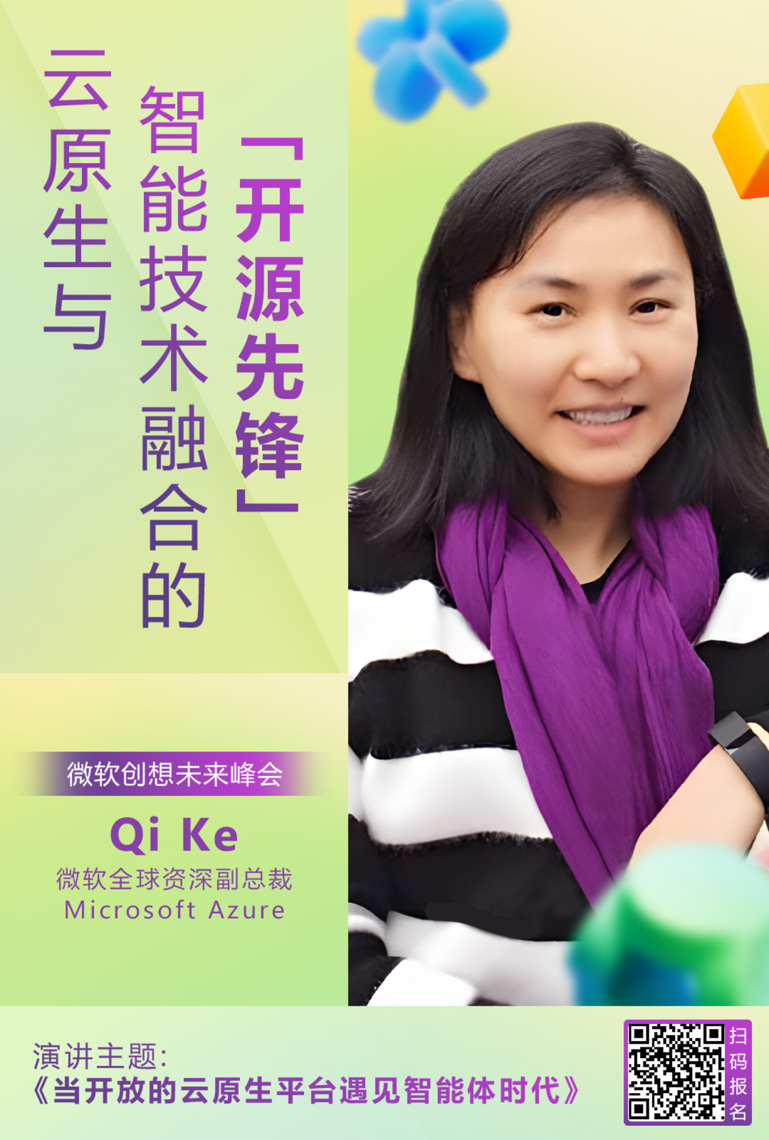 Qi Ke 深耕编程领域超过20年,见证了云原生从一种公司内部文化,到被整个业界广泛采纳,再到当今成为主流技术的过程。她曾主导Azure Kubernetes Service(AKS)的构建,帮助企业在云上高效运行容器化应用。如今,她正在积极推动智能技术与云原生技术的深度融合,提升开源生态的创新效率。