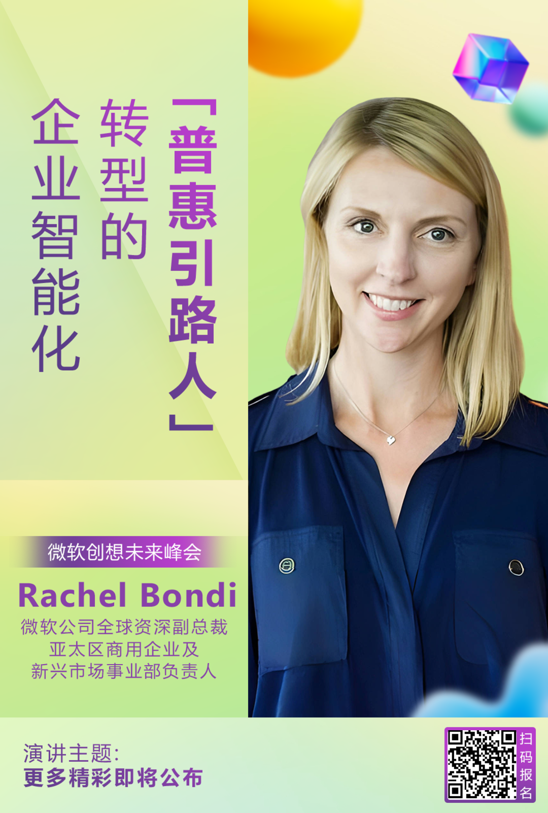在27年的微软职业生涯中,Rachel Bondi 横跨美国、澳大利亚及亚太市场,推动覆盖20个国家的140万家中小企业和5000家大型企业实现数字化转型。她是技术普惠的坚定实践者,更是技术多元包容生态的倡导者。秉持 “客户至上、伙伴始终、以人为本” 的理念, Rachel 致力于赋能不同规模的客户与合作伙伴,通过智能化转型成就不凡的商业价值。