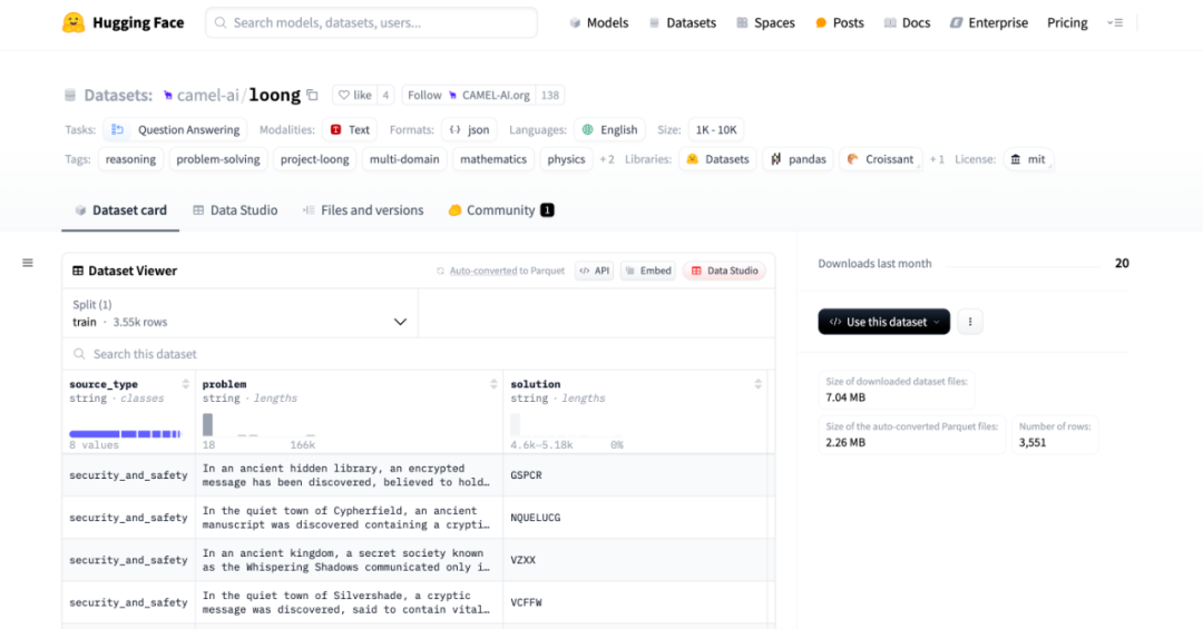from camel.datasets import StaticDatasetfrom datasets import load_datasetdataset_dict = load_dataset("camel-ai/loong")dataset = dataset_dict["train"].filter(lambda example: example['source_type'] == 'graph_discrete_math')seed_dataset = StaticDataset(dataset)
