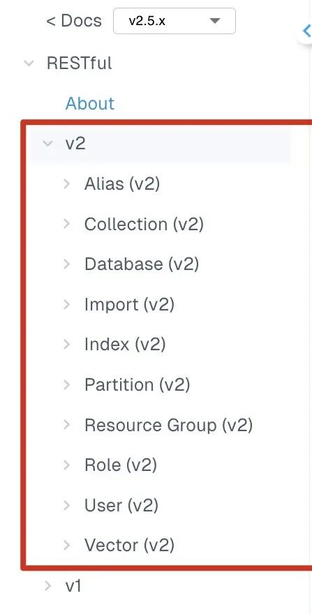 Restful v2(https://milvus.io/api-reference/restful/v2.5.x/About.md)