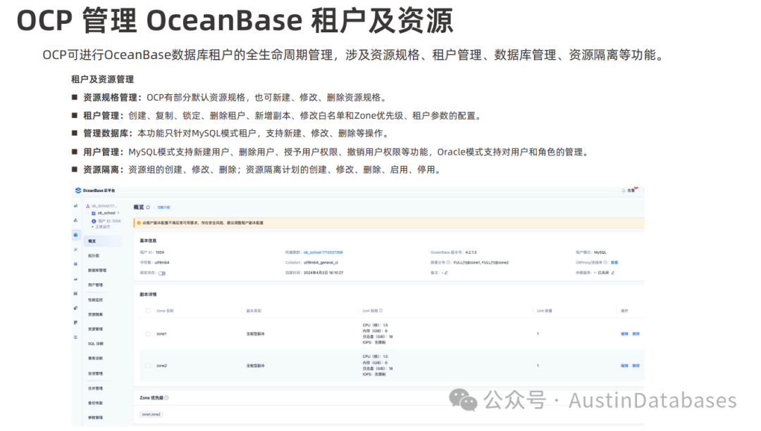 OCP 对 OceanBase 租户的管理能力主要包括以下几个方面: