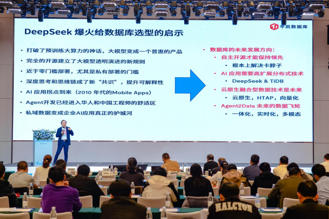 在本次会议中,平凯星辰副总裁刘松发表了主题演讲《国产化 + 数智化背景下的国产数据库选型思考》,深入分析了当前医疗行业在数智化转型过程中的技术挑战与架构演进趋势。他指出,国产化是医疗信息系统安全合规的重要保障,而数智化则是推动行业高质量发展的核心动力。两者融合发展,正加速国产数据库技术的全面创新与落地实践。