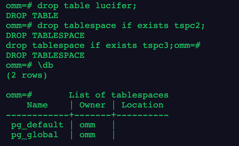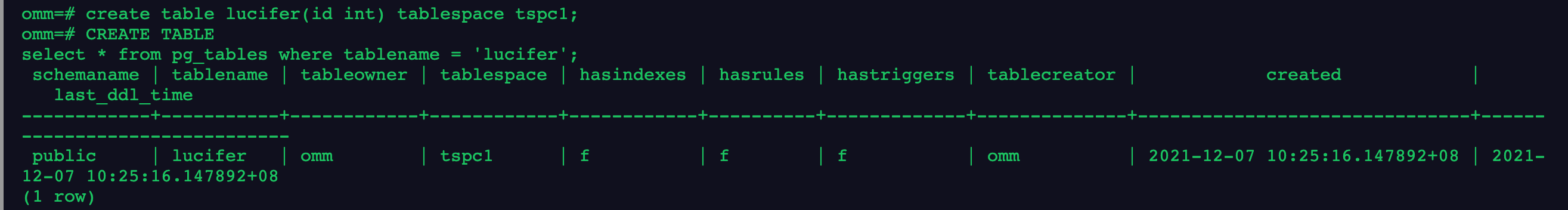 create tablespace tspc2 owner Lucy relative location 'tablespace/tablespace2';