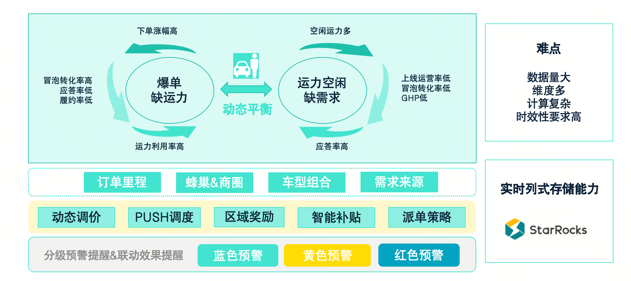 供需平衡联动:支持实时计算数百亿数据,确保分钟级联动,提升供需匹配效率。