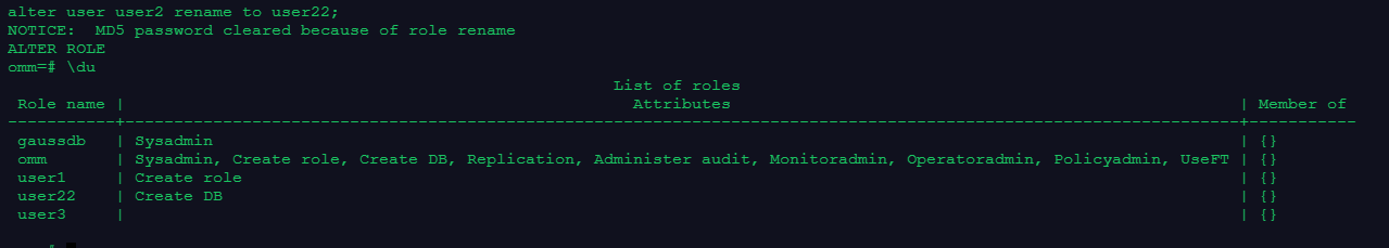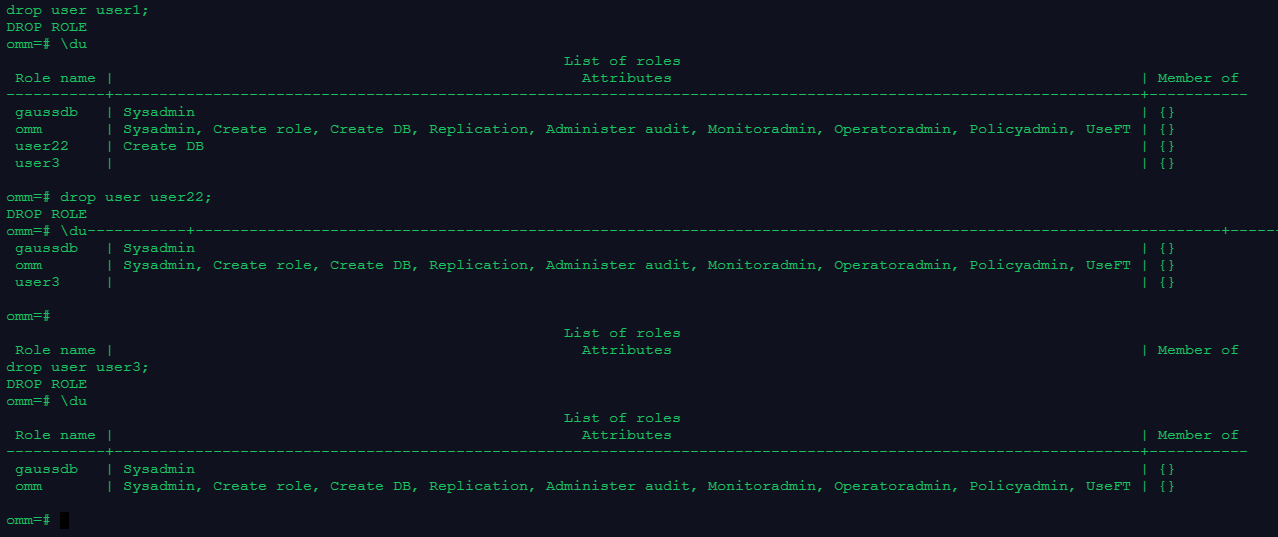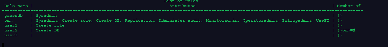 1.创建用户user1、user2和user3,user1具有CREATEROLE权限,user2具有CREATEDB权限,要求使用两种不同的方法设置密码