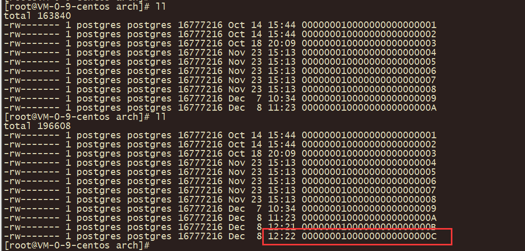 观察到归档目录中,已经将00000001000000000000000C拷贝到归档目录中