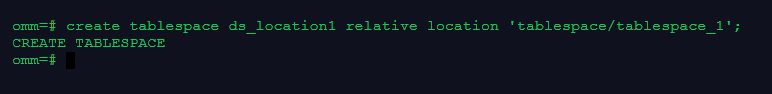 CREATE TABLESPACE ds_location1 RELATIVE LOCATION 'tablespace/tablespace_1';