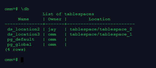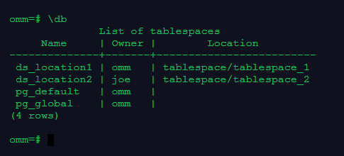 CREATE TABLESPACE ds_location2 OWNER joe RELATIVE LOCATION 'tablespace/tablespace_2';