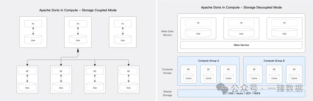 Apache Doris 支持多种部署模型,尤其是在 3.0 版本发布后。支持存算分离和存算一体模式,用户可以根据需求灵活选择最合适的部署方式。