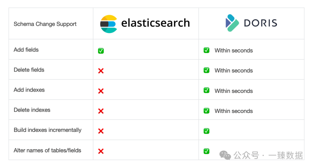 在索引和搜索方面,Doris 和 Elasticsearch 存在两个重要区别: