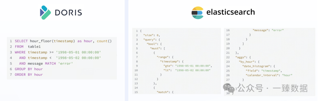 数据的写入和存储最终是为了支持查询,而查询的功能和性能是实现业务价值的关键。接下来,我们将从查询的易用性、功能和性能方面对比 Doris 和 Elasticsearch。
