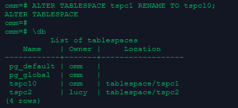 ALTER TABLESPACE tspc1 RENAME TO tspc10;