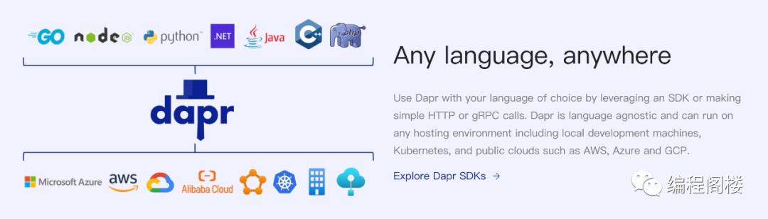 service-to-service invocation接口实现应用无关,语言无关(上图中我们看到pythonapp调用nodeapp时,实际上是调用的Dapr框架提供的sidecar)。