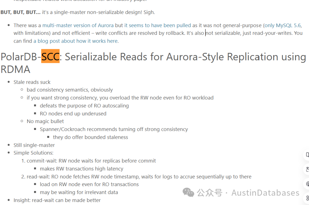 我们反过来看看上面具体Berkeley大学的研究所课程中,具体对PolarDB-Scc理论秉持的是一个什么态度。