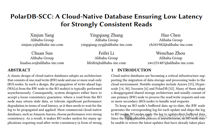 想想,这所大学诞生过,Ingres、PostgreSQL、Oracle、DB2等这些数据库,算是数据库系统的摇篮,数据库理论的圣殿。在数据库研究生的课程中开始教授PolarDB的理论,这次我们国产数据库翻身了。让我不得不把这篇,我之前翻译过的论文再次的好好的又读了一遍。(想和我一起在读一遍这篇PolarDB-SCC 白皮书的可以在文尾连接区下载PDF)