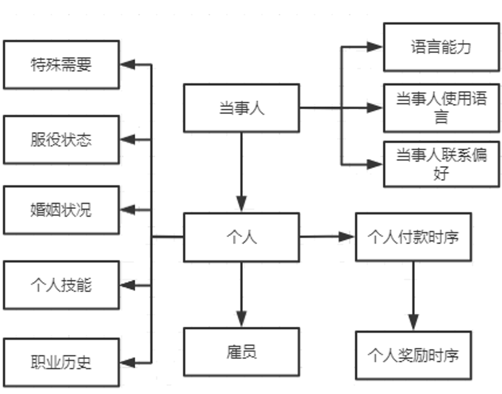 通过增加数据实体及关系对主题域模型进一步细化,以数据实体及其之间的关系为基本单元所构成的模型。概念模型遵循主题域模型所定义的骨干结构并在实体层面进行了扩充细化,可以更为具体地反映企业业务数据现实。一个典型的对当事人主题域进行细化的概念模型示例如下图所示: