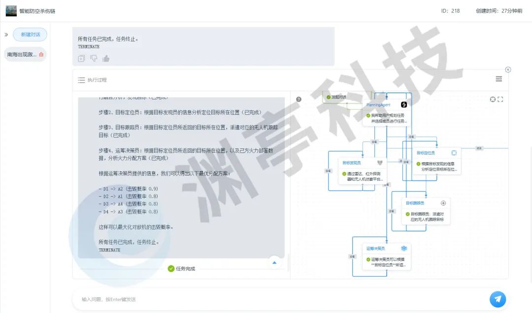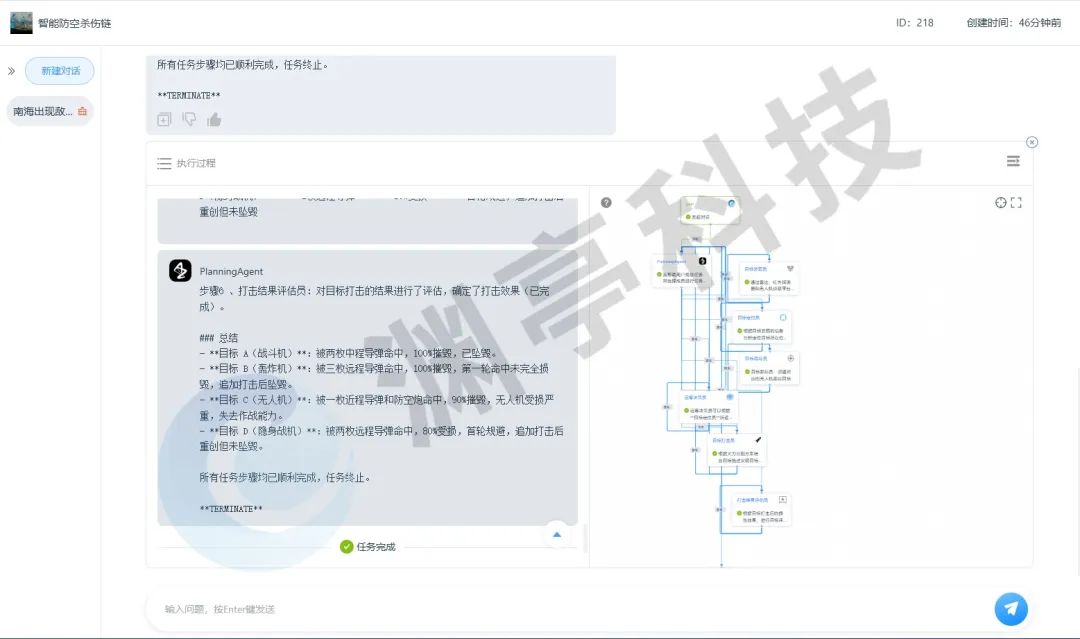 评估阶段:战斗后评估智能体会通过实时回传数据,评估拦截效果,包括命中率、目标摧毁情况以及火力使用效率。基于评估结果,系统能够对作战策略进行调整和优化,确保下一轮作战中的更高效决策。