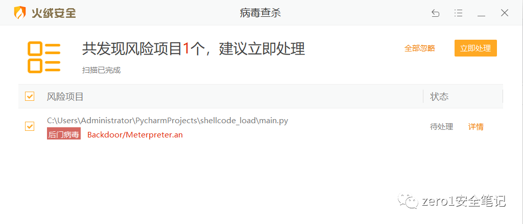言归正传,python加载shellcode免杀,普通的加载器代码现在普遍过不了,特征已经被记录了,下面就是一个经典的加载执行shellcode代码