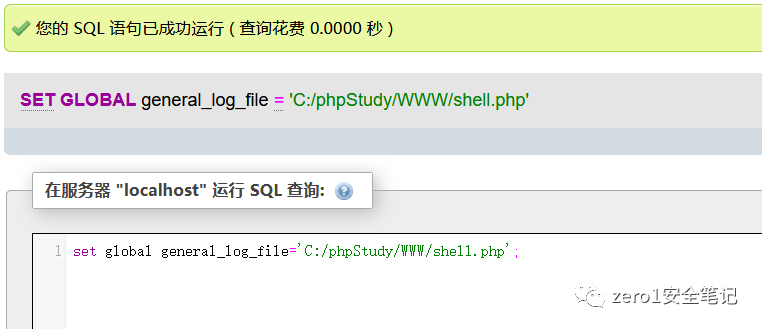 日志是关闭的,开启日志并且更改日志存储位置,尝试写一句话到shell
