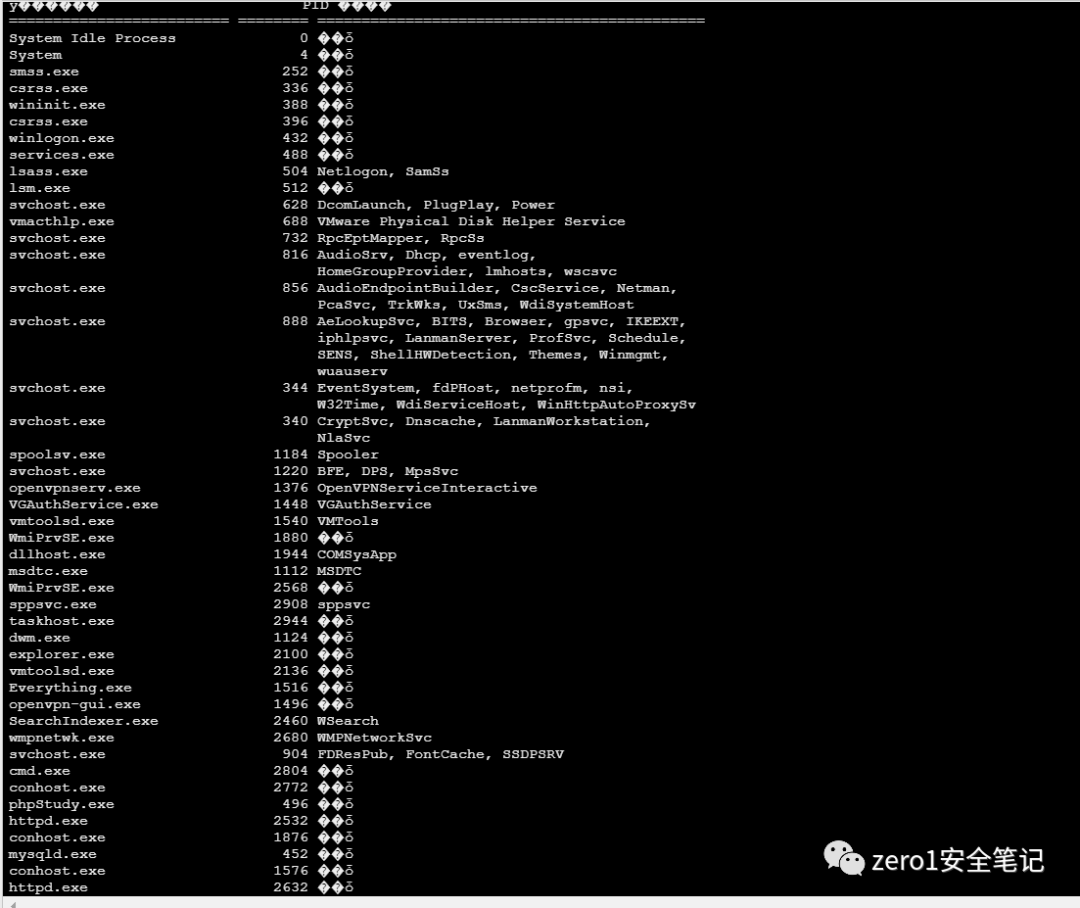 查看有无杀软运行,估计是没有,因为简单的一句话都能执行,命令:
