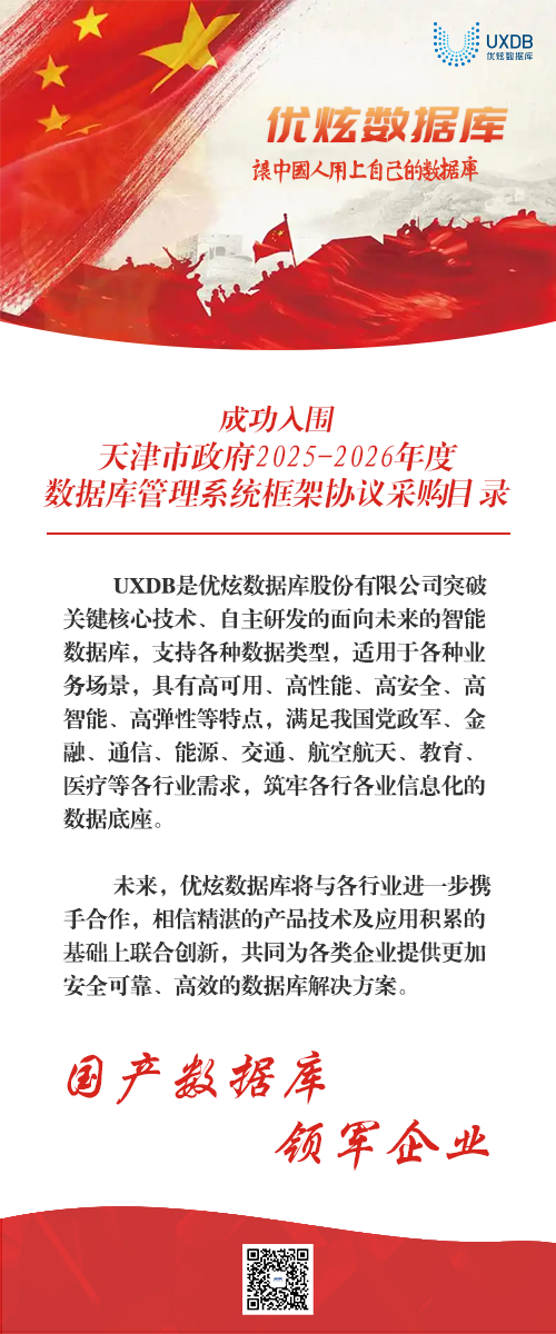 优炫数据库成功入围天津市政府2025-2026年度数据库管理系统框架协议采购目录!
