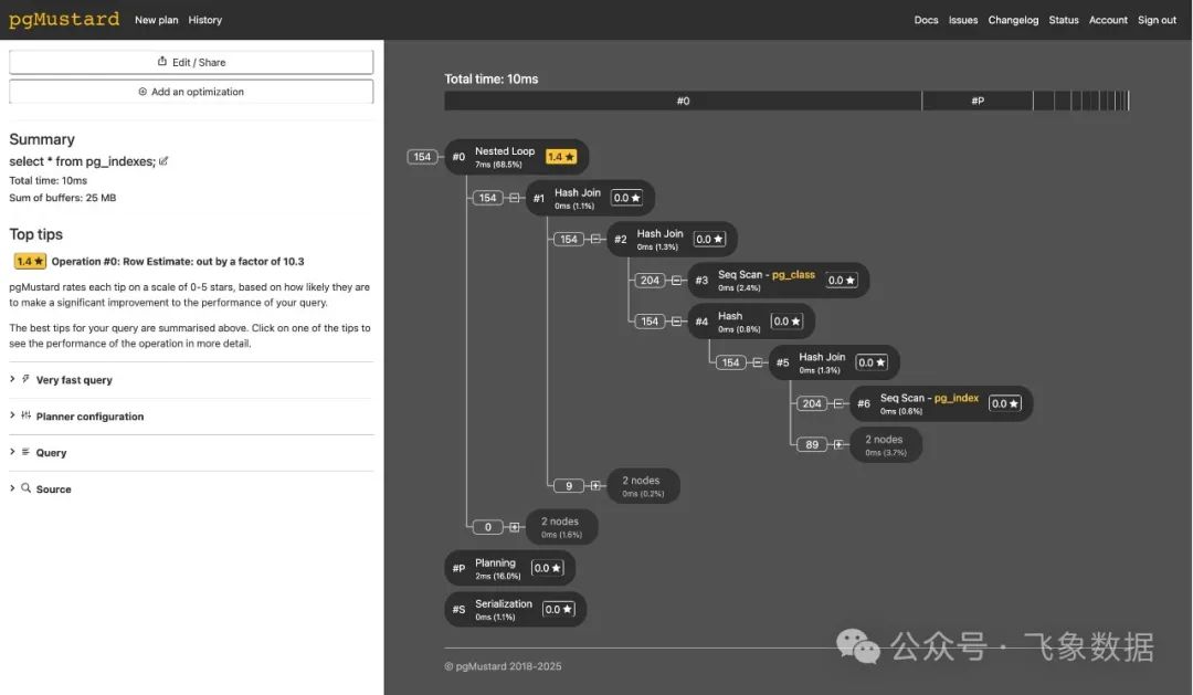 一些相对微妙的功能是我最喜欢的一些 — 默认情况下,它会折叠查询计划的快速部分(这对于大型计划特别有用),并尝试在查询已经非常快速或高效时明确(低分提示,或根本没有)。